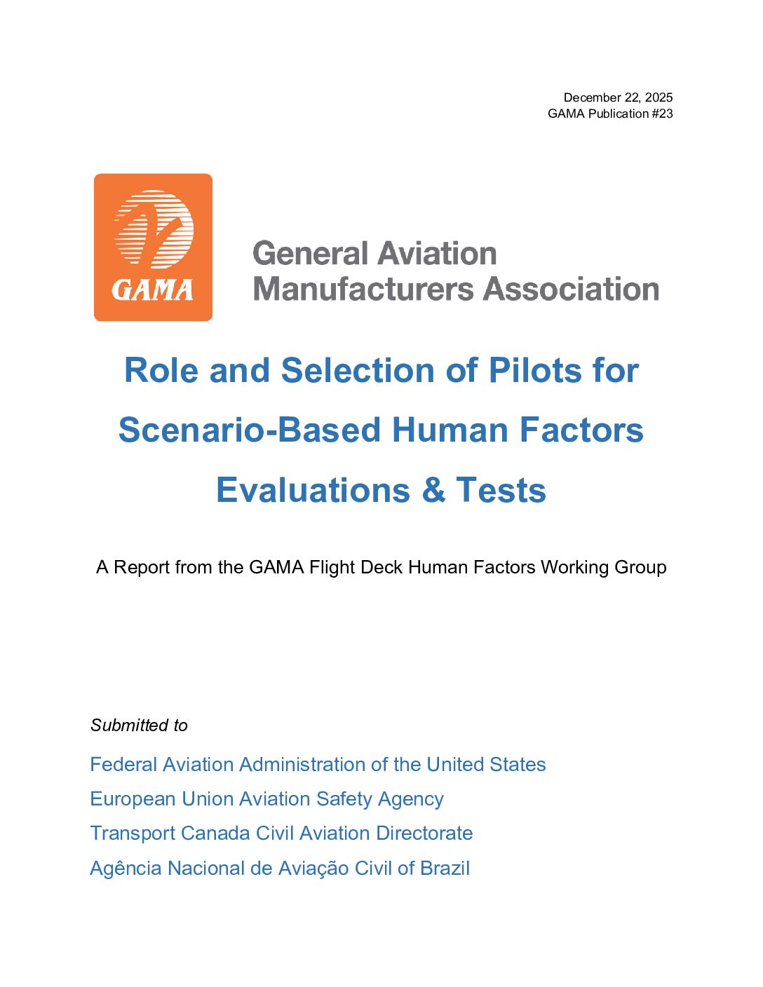The GAMA Flight Deck Human Factors Working Group (FDHFWG) consists of human factor experts from across the GAMA membership. The group is tasked with developing practical expert advice to the Certification Authorities and Industry on: