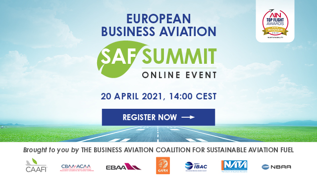 To register for the European Business Aviation Sustainable Aviation Fuel (SAF) Summit, visit registration.safsummit.eu.
