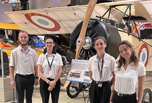 The four students who participated in the 2024 Daher Aircraft/GAMA international internship are shown during last year’s EAA AirVenture Oshkosh fly-in.